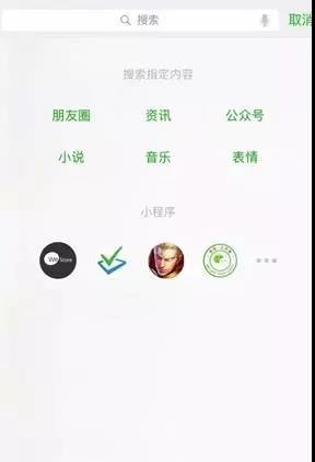 微信 + 搜狗形成微生態(tài)中強(qiáng)大的搜索引擎。微信搜索頁面還有小程序的快捷入口,為常用的小程序帶來更多的曝光和開啟機(jī)會。